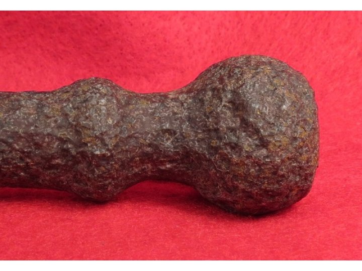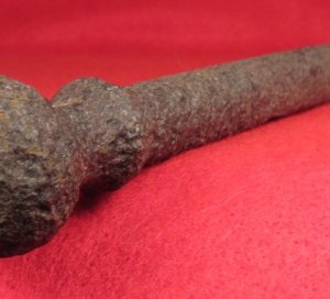 This Federal picket pin, constructed of wrought iron and measuring approximately 13 inches in length, was used in the field to secure the horses when resting. This specimen appears to be excavated, is missing its ring, and is in good solid stable condition. An example of a similar picket pin is pictured in "Civil War Artifacts" by Howard Crouch on page 129, item 2 and in "Excavated Artifacts from Battlefields and Campsites of The Civil War" by Stanley S. Phillips on page 79 as item 1. These pages are included in the additional images in this listing. This picket pin will be an excellent addition to any campsite, cavalry, or general relic collection.