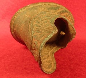 This excavated sword pommel for Model 1850 Foot or Staff and Field, Officer Sword is constructed of cast brass and is in very good condition. It was acquired directly form the digger who recovered it from the area of Unison, VA. The brass has aged into a very pleasing dusty green-brown patina. Along the sides are what believed to be raised Acanthus leafs. There is a slight inward bend along one side. It measures approximately 2-1/4 inch in length and its head measures approximately 1-1/8 x 1-5/8 inches.